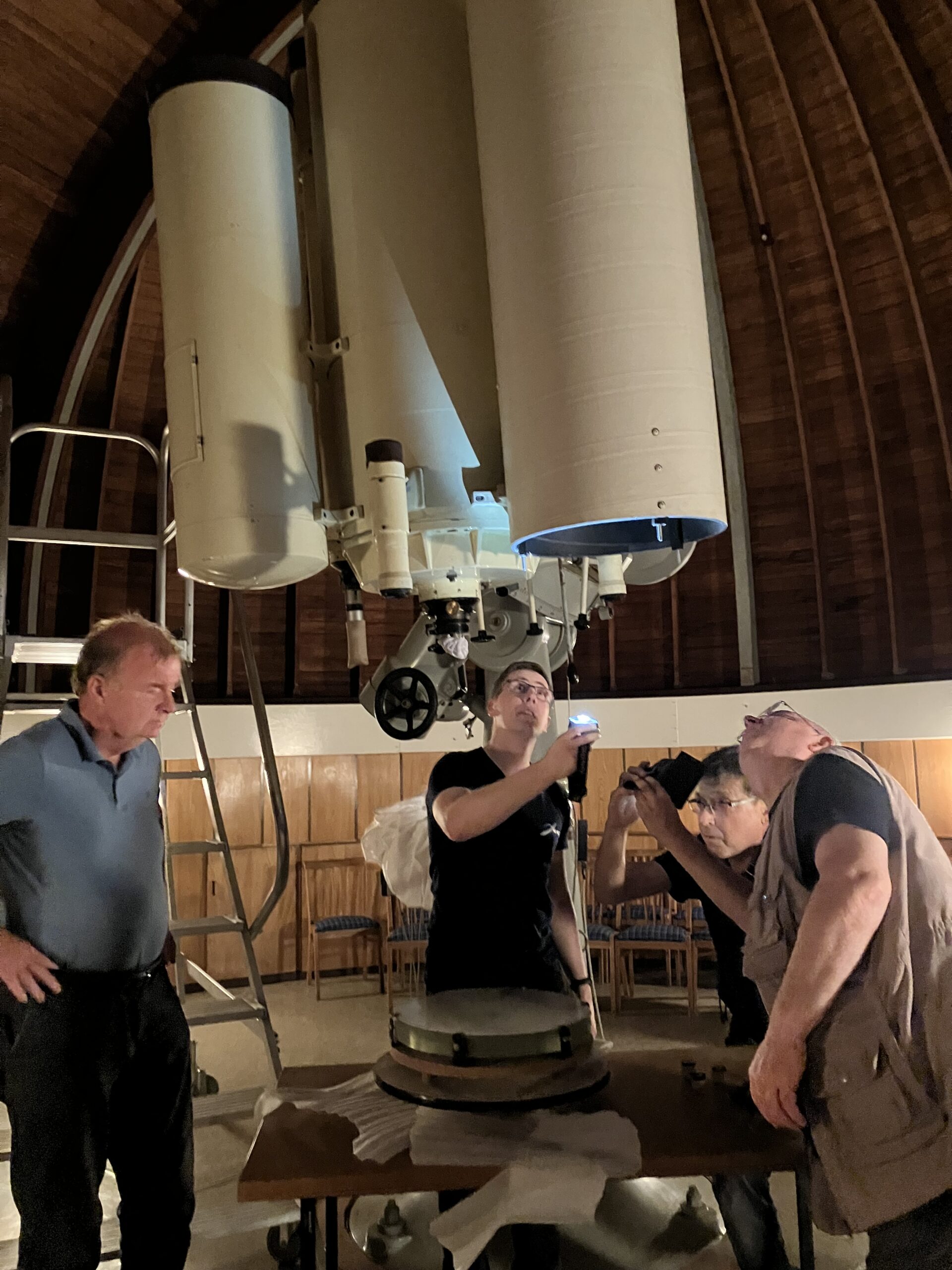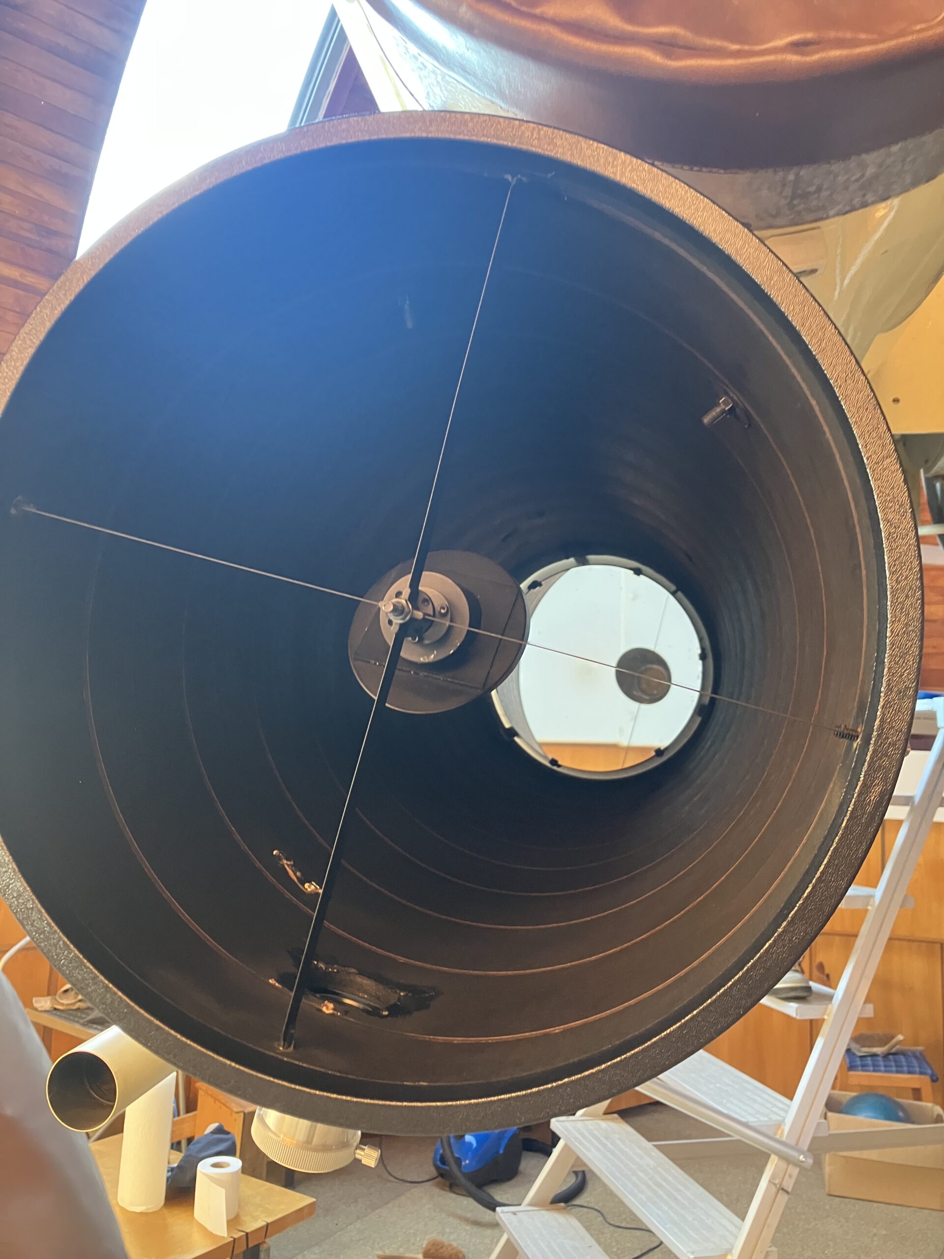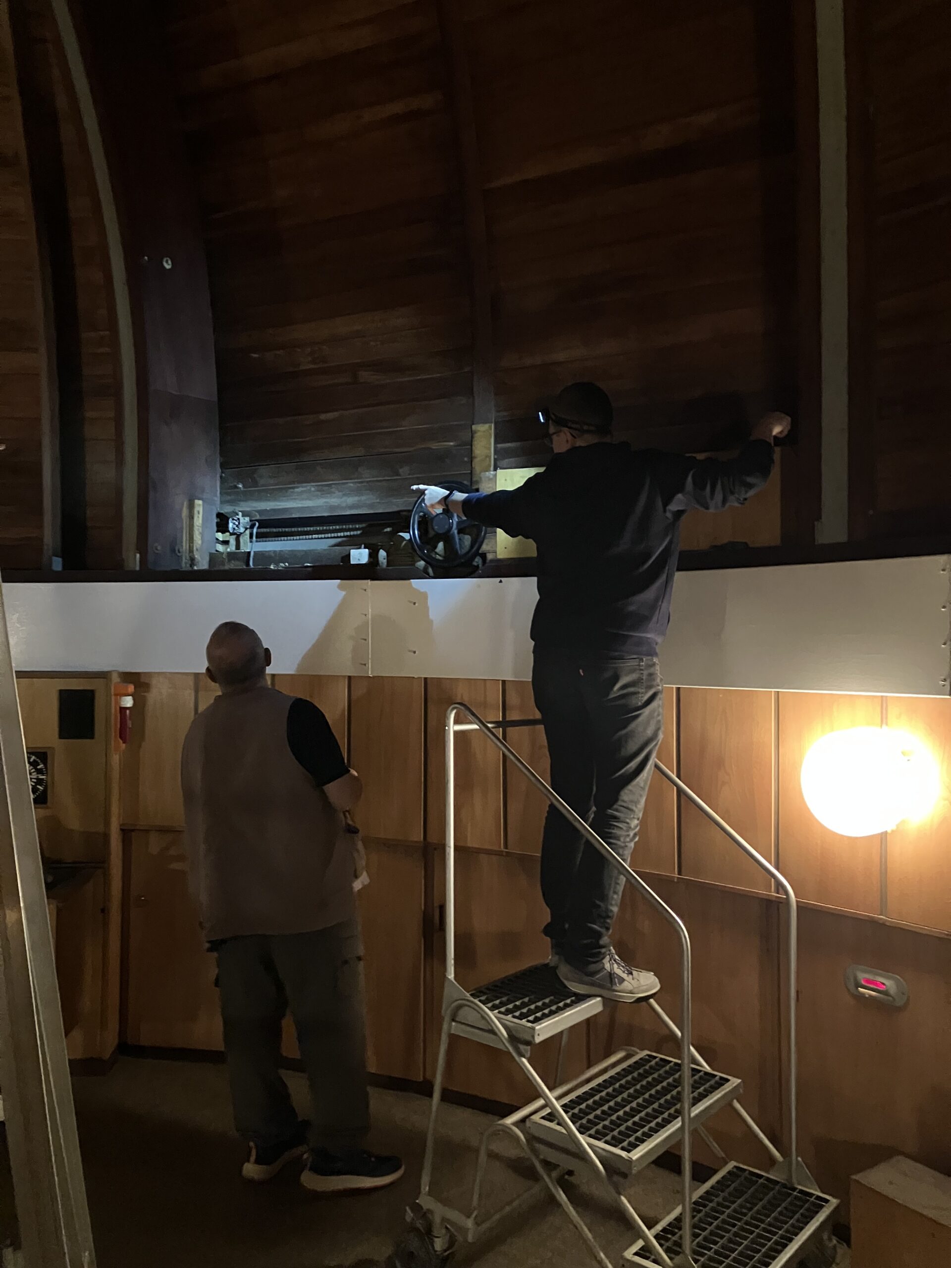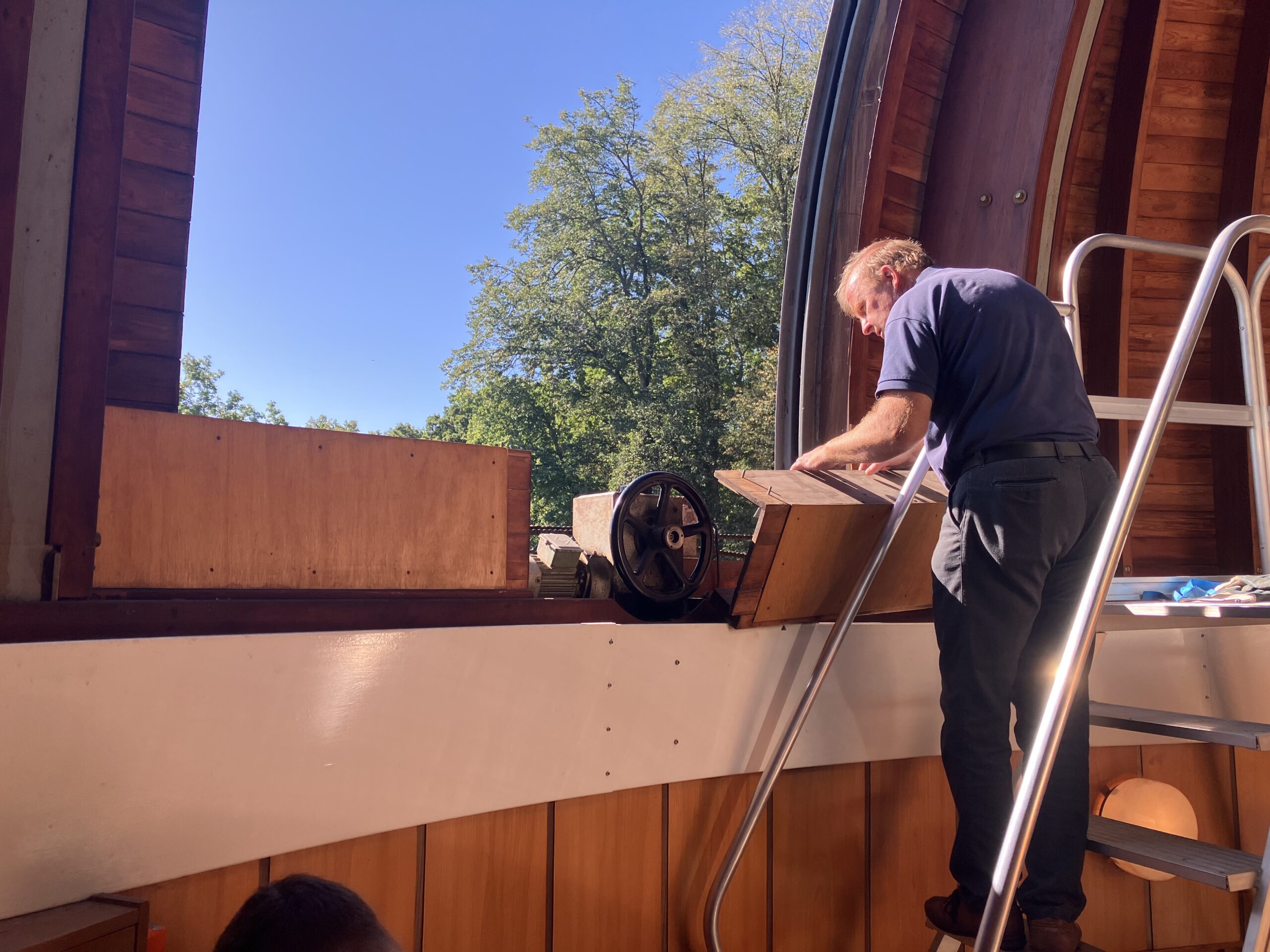 Seit vielen Jahren war der Betrieb der großen Beobachtungskuppel aufgrund technischer Defekte an der Kuppelöffnung nicht mehr möglich. Hinzu kamen verschmutzte Spiegel der Teleskope und verstellte Optiken. Mit der Neugründung unseres Vereins sollten unter anderem die Mängel der Sternwarte behoben werden. Durch unsere Initiative konnten wir die Mechanik der Öffnung reparieren und den stark verschmutzten Spiegel des Newtonteleskops reinigen. In den nächsten Einsätzen werden die Teleskope vollständig gewartet und den Besuchern unserer Einrichtung wieder zugänglich gemacht. Da wir künftig erneut auf die großen Optiken der Sternwarte zurückgreifen können, wird es möglich sein, weit entfernte Objekte wie Galaxien und Nebel zu beobachten oder die Planeten noch detailreicher zu betrachten.